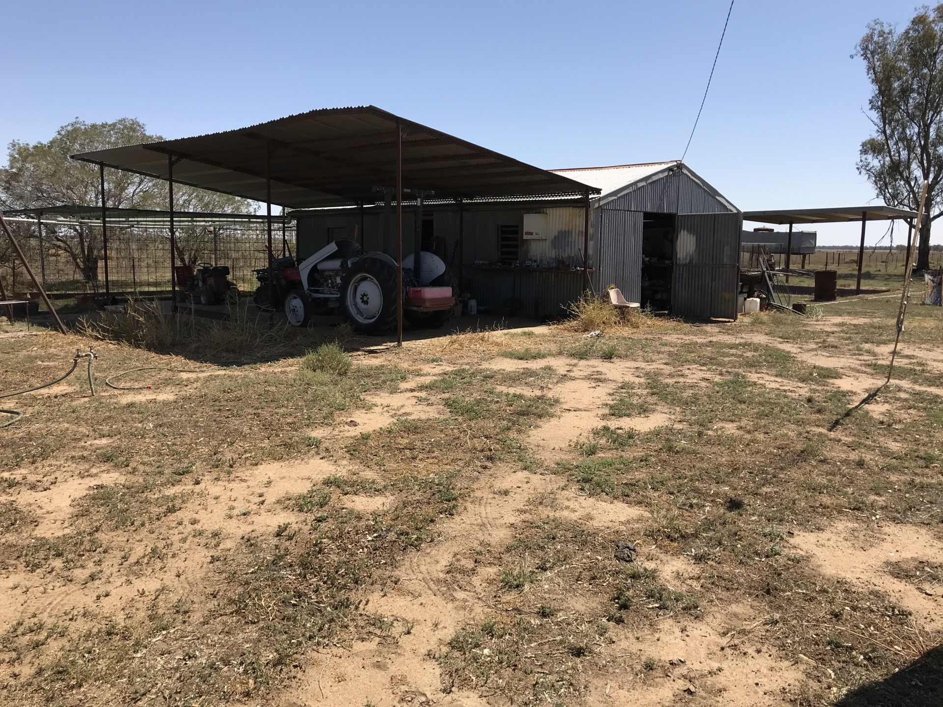 * Machinery/ hay shed, steel cattle yards, silos
