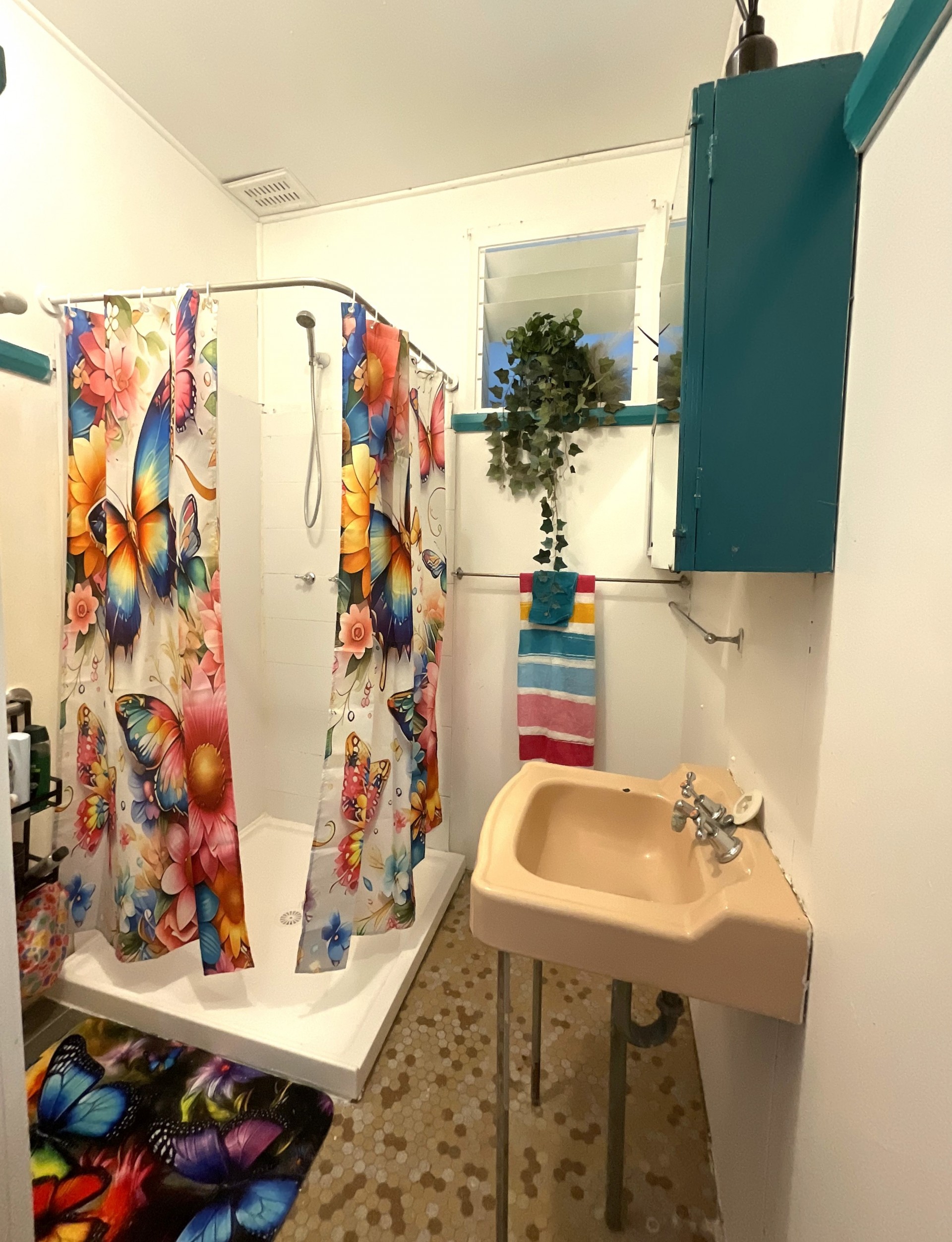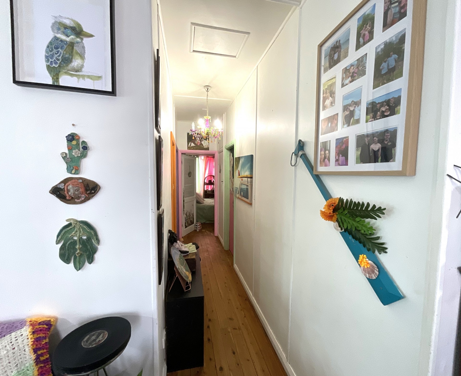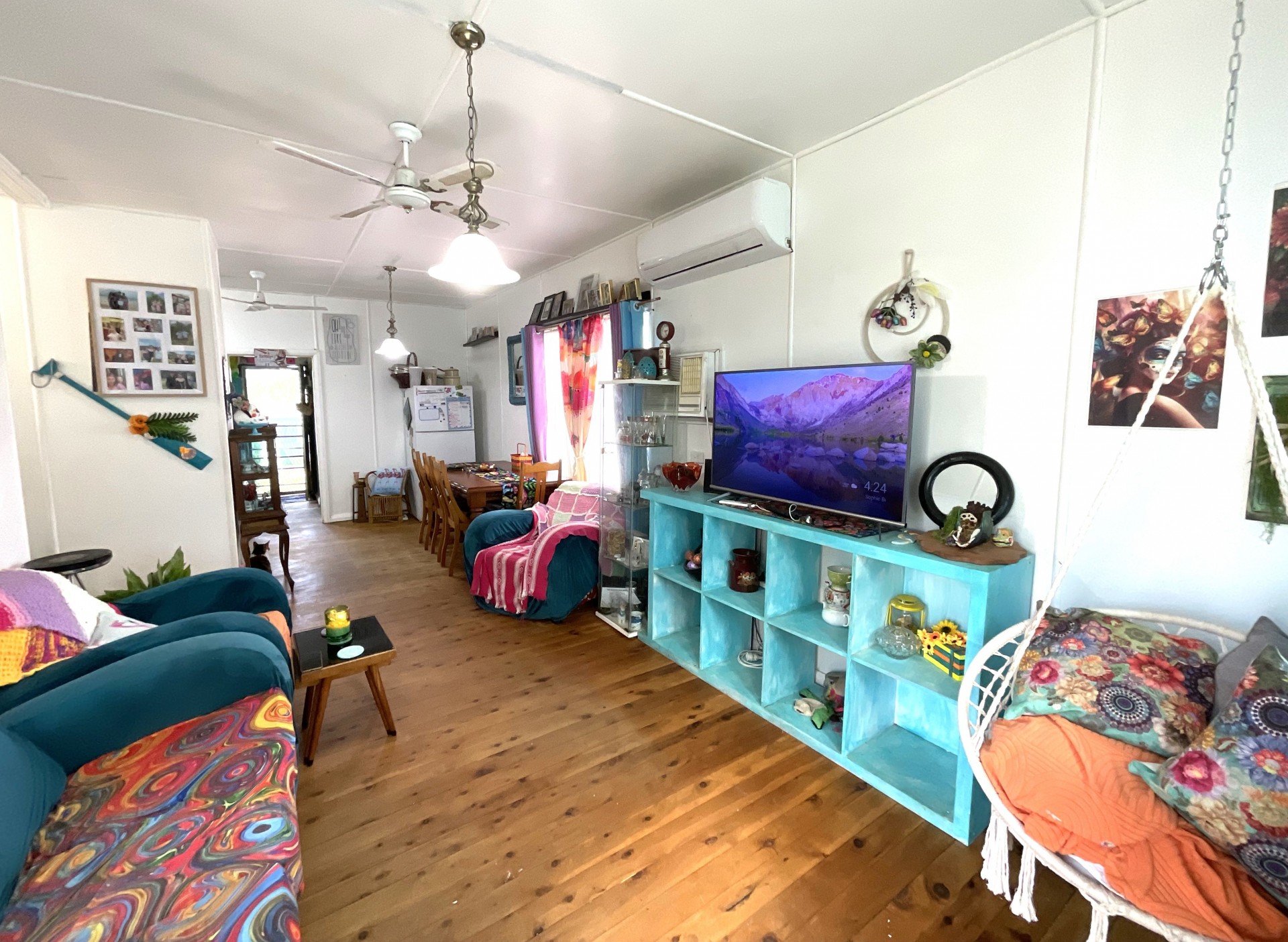 The home includes three bedrooms, two of which feature built-in wardrobes. There are two separate living areas, complemented by two split system air conditioners and ceiling fans to keep you comfortable year-round. The laundry retains its original charm with an old cement wash basin, adding a nostalgic touch.