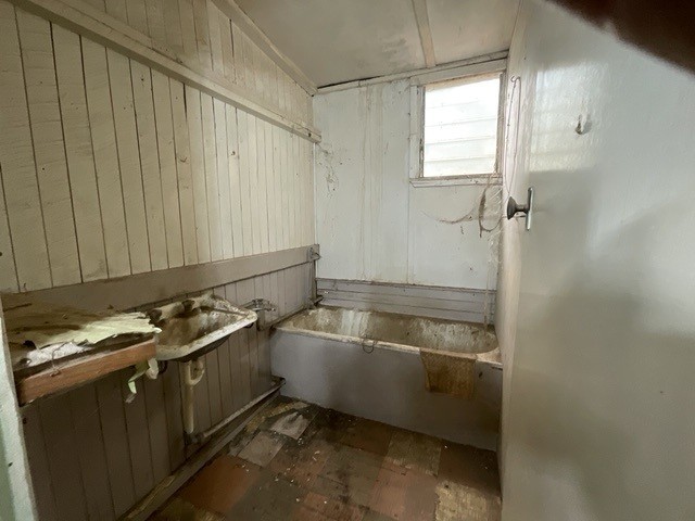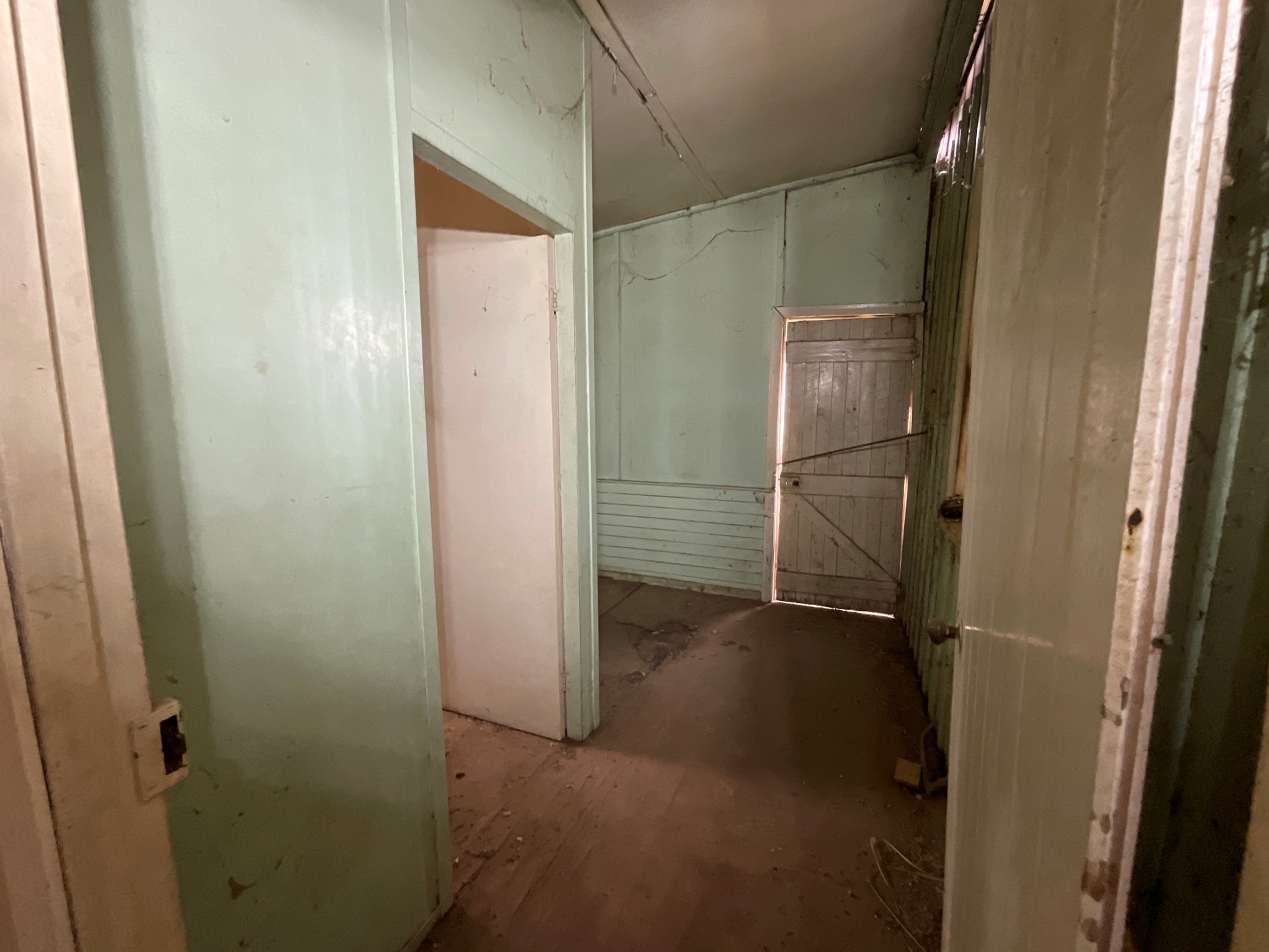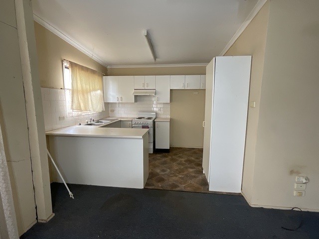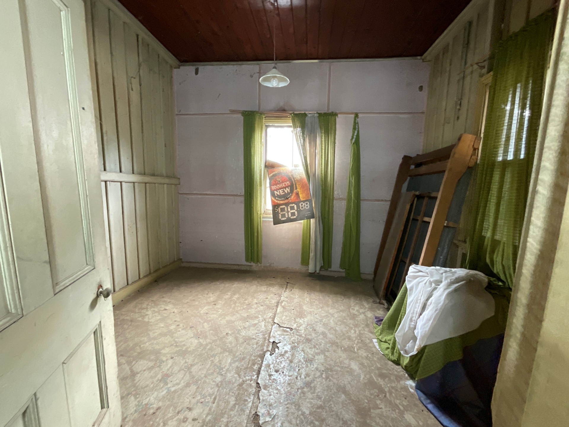The first home is a transportable-style residence requiring only minor renovations. It features two bedrooms with built-in robes, a bathroom with a shower over bath, plus a living area and kitchen. Renovations have been commenced in the living room but remain incomplete, offering an opportunity to add your own finishing touches.